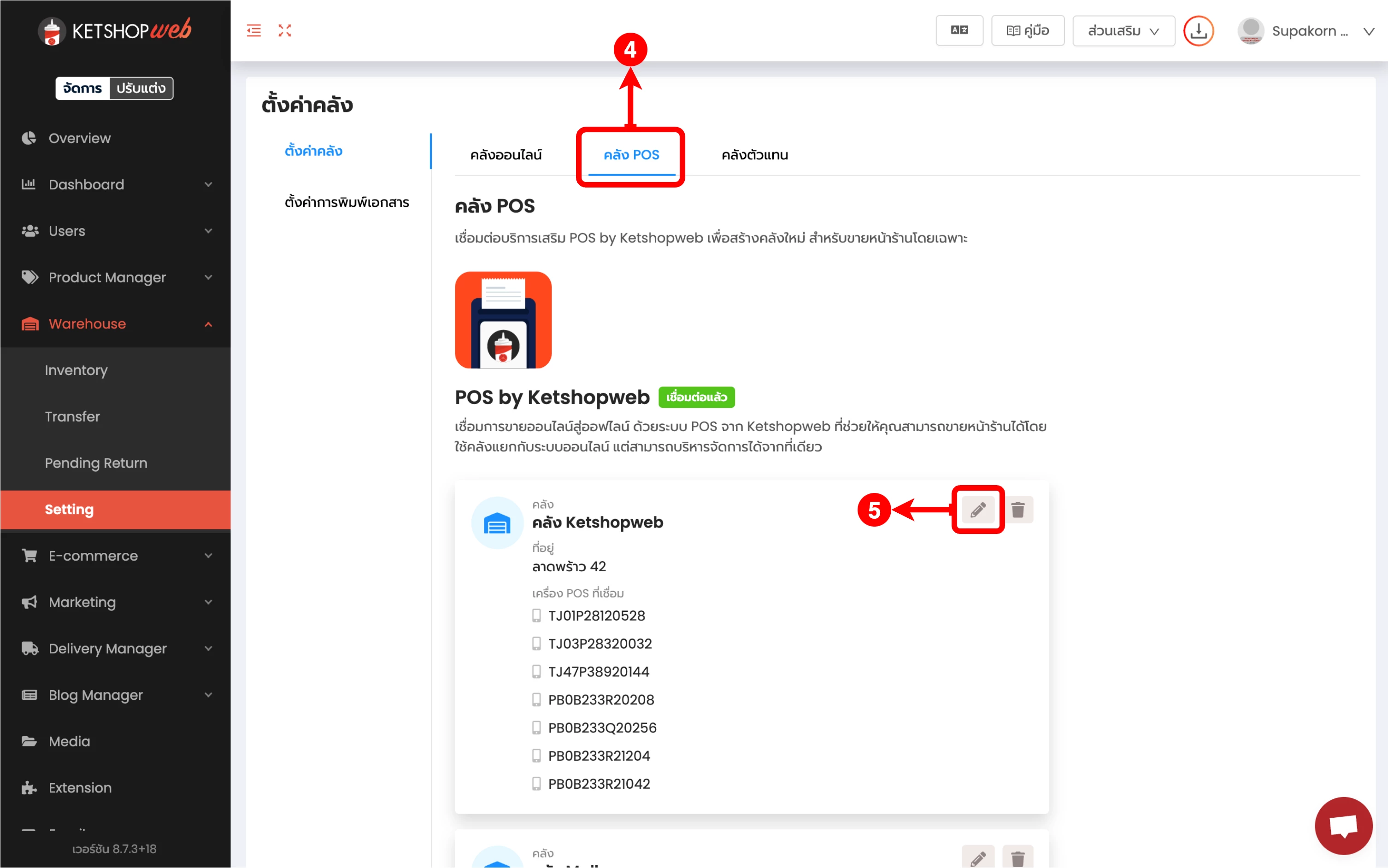(ตำแหน่งที่ 4) คลิกแท็บ 'คลัง POS'