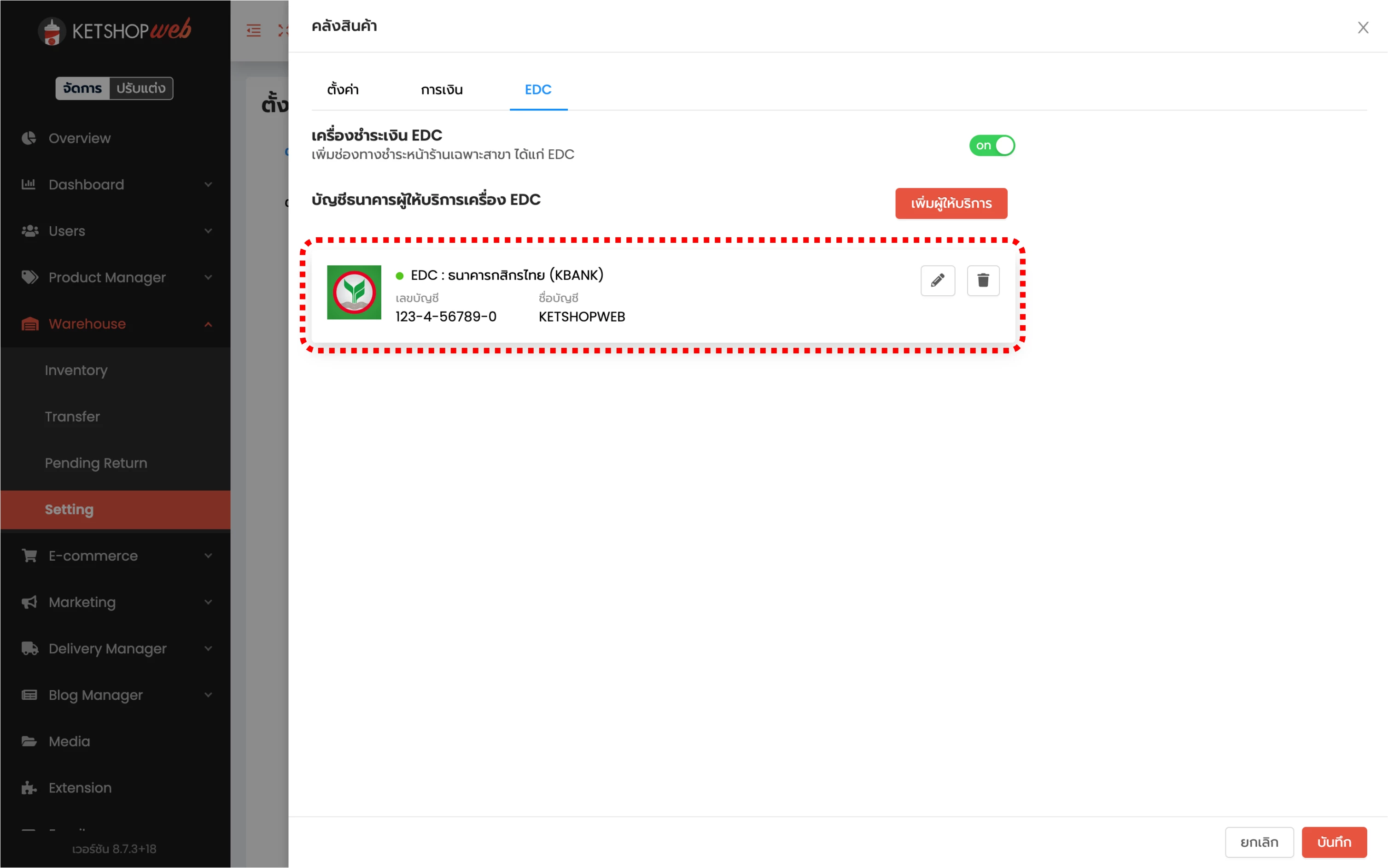 เมื่อเพิ่มบัญชีธนาคารผู้มห้บริการ EDC เสร็จสิ้น จะแสดงดังรูป