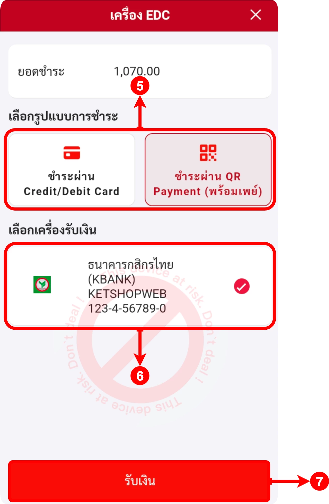 การใช้งานการชำระเงินรูปแบบ EDC เฉพาะหน้าร้านผ่านเครื่อง POS เท่านั้น