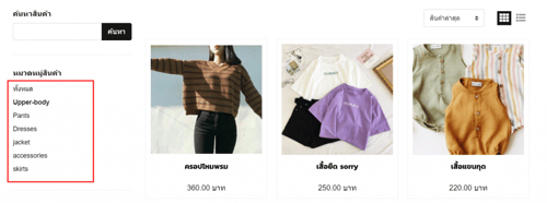 - ตัวอย่างการแสดงผลบนหน้าเว็บไซต์ที่มีการจัดหมวดหมู่ให้ค้นหาง่าย