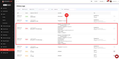 (ตำแหน่งที่ 12) สามารถดูประวัติการรวมบัญชีได้โดยไปที่เมนู "History Logs"