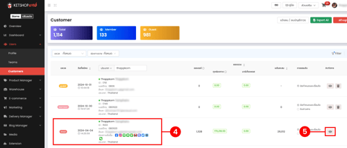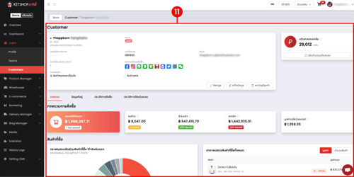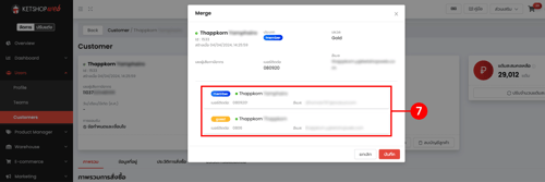 (ตำแหน่งที่ 7) แสดงข้อมูลบัญชีผู้ใช้งานที่สามารถรวมได้ โดยเงื่อนไขการรวมคือเบอร์โทรหรืออีเมลต้องตรงกัน