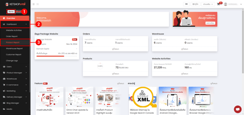 (ตำแหน่งที่ 3) เลือกเมนูย่อย "Product Report"