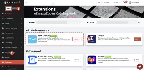 >> การรเชื่อมต่อระบบบัญชี PEAK Account <<