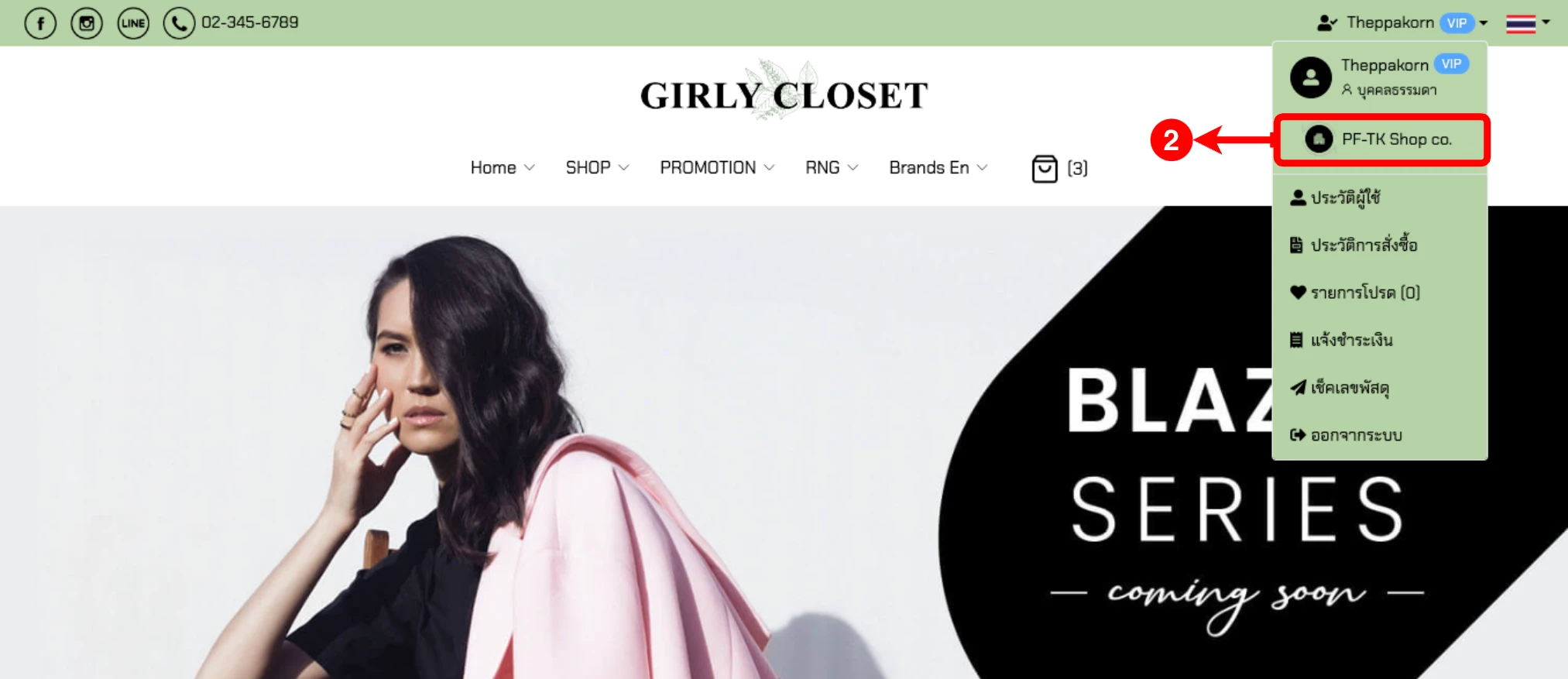 (ตำแหน่งที่ 1) ที่มุมขวาบน คลิกที่โปรไฟล์ของลูกค้า