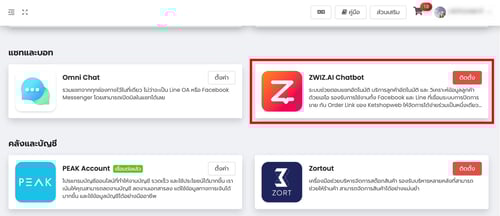 เชื่อมต่อ Ketshopweb บนระบบ ZWIZ.AI