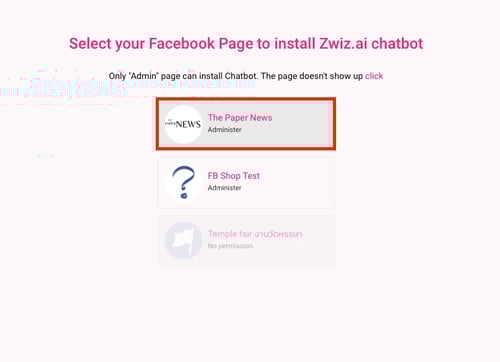 ทำการเลือกเพจที่ต้องการใช้งาน (ต้องเป็น Admin Page เท่านั้นถึงเลือกได้)
