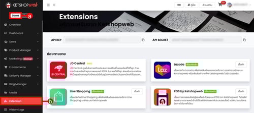 เข้าสู่ระบบจัดการเว็บไซต์ Ketshopweb เพื่อ copy ketshop api key และ ketshop api secret