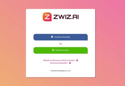 เข้าสู่เว็บไซต์ https://cms.zwiz.ai/th และเลือกช่องทางการใช้งานได้เลย