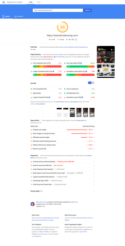 ในกรณีที่คะแนนของหน้าบนเว็บไซต์ไม่ดี เครื่องมือนี้ก็จะแนะนำว่ามีจุดใดที่มีปัญหา พร้อมทั้งแนวทางการแก้ไขให้ด้วย ซึ่งตามตัวอย่างภาพด้านล่างนี้ คือ ผลการ scan speedindex ครับ ซึ่งการ scan จะแบ่งผลลัพท์เป็น 2 เเบบคือ Mobile และ Desktop ซึ่งเกณฑ์ในการให้คะแนนความเร็วจะต่างกันครับ ซึ่งในรายละเอียดมันจะแจกแจงปัญหาว่าทำไมถึงให้คะแนนช้า เพื่อให้เรากลับไปแก้ไขตามเงื่อนไขของมันครับ