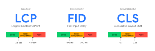 LCP สีเขียว น้อยกว่า 2.5sec , สีส้ม 2.5-4 sec, สีแดง มากกว่า 4sec