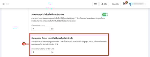 (ตำแหน่งที่ 4) กำหนดวันหมดอายุ Order Link ที่ไม่ทำการยืนยันคำสั่งซื้อ