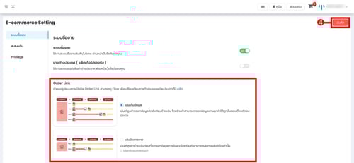 (ตำแหน่งที่ 4) เลือกรูปแบบ Order Link ที่ต้องการใช้งาน จากนั้นคลิก "บันทึก"