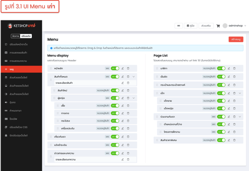 ○ Off ก็ต่อเมื่อต้องการให้เมนูนั้น ๆ ไม่แสดงผลบนหน้าเว็บ หรือเพื่อปิดการใช้งานเมนู