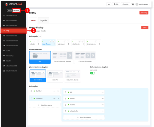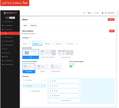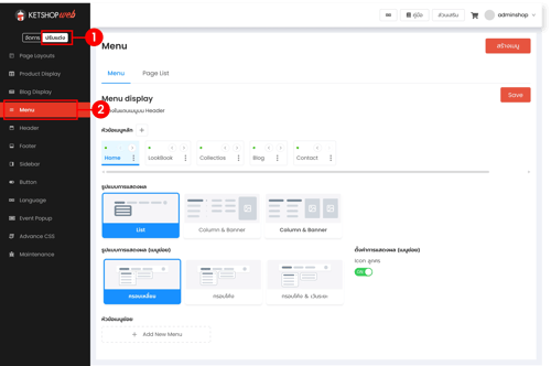 ภาพรวมการปรับตำแหน่ง UI Menu Display การตั้งค่าการแสดงผลเมนู (แสดงในแถบเมนู Header)