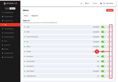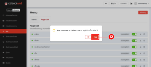 (ตำแหน่งที่ 12) คลิกไอคอน 'ถังขยะ' ของเมนูที่ต้องการลบ