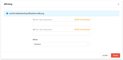 (ตำแหน่งที่ 3) คลิกปุ่ม 'สร้างเมนู'