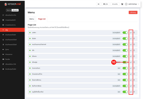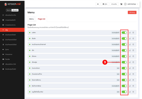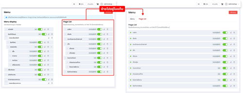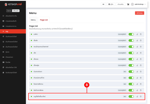 เมนูใหม่ที่สร้างจะอยู่ที่แท็บ Page List ก่อนเสมอ