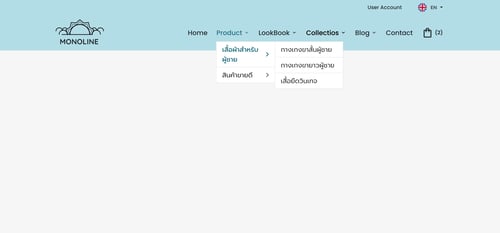 (ตำแหน่งที่ 10) คลิกเลือกหัวข้อเมนูย่อยที่ต้องการ เพิ่มเมนูย่อยระดับถัดไป โดยในที่นี้เลือกหัวข้อ “เสื้อผ้าสำหรับผู้ชาย”