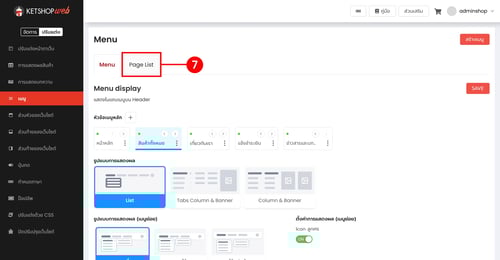 (ตำแหน่งที่ 7) คลิก 'Page List'
