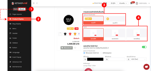 (ตำแหน่งที่ 2) จากนั้นเลือกเมนู "Product Display"