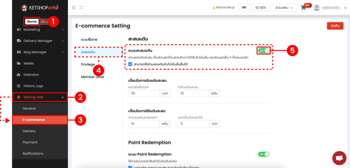 (ตำแหน่งที่ 5) คลิกปุ่ม "on" เพื่อเปิดใช้งานระบบสะสมแต้ม