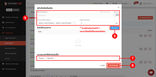 (ตำแหน่งที่ 8) คลิกปุ่ม "สร้างโปรโมชั่น"