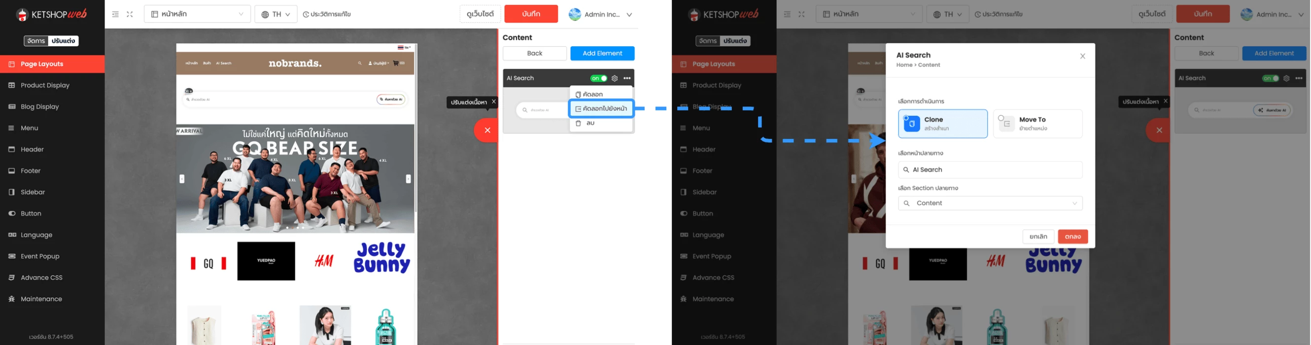 "การคัดลอกหรือย้าย Section และ Element" จะช่วยให้ผู้ใช้งานสามารถคัดลอก (Clone) หรือย้าย (Move) Section