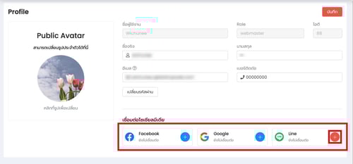 ได้แก่ Facebook , Google และ Line หากลูกค้าที่ยังไม่ได้ทำการเชื่อมต่อให้คลิกที่ 'เครื่องหมายบวก'