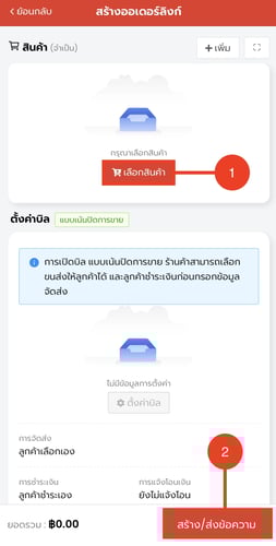 ทำการ "เลือกสินค้า"ที่ต้องการส่งให้ลูกค้า ในตำแหน่งที่ 1 จากนั้นให้คลิกสร้าง/ ส่งข้อความ เพื่อส่งข้อมูลให้แก่ลูกค้า