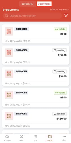 E-payment สามารถดูรายละเอียดการชำะเงินของสินค้าโดยการแกสน QR Code ส่วนข่างๆ จะมีการแจ้งเตือนสถานะการโอน