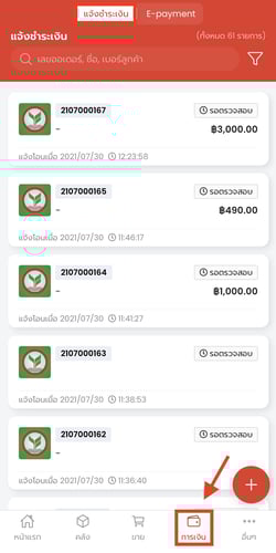 4. "หน้าการชำระเงิน" สามารถตรวจสอบการชำระเงินของลูกค้าผ่านแอปพลิเคชั่น โดยแบ่งออกเป็น 2 รูปแบบ