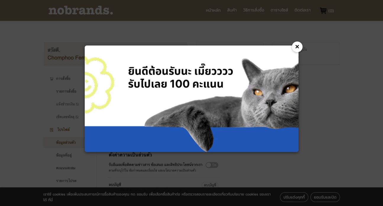 เมื่อมีการอัปโหลดรูปภาพ ระบบจะแสดงภาพพร้อมรายละเอียดแต้มต้อนรับให้กับผู้ใช้หลังจากสมัครสมาชิกสำเร็จ