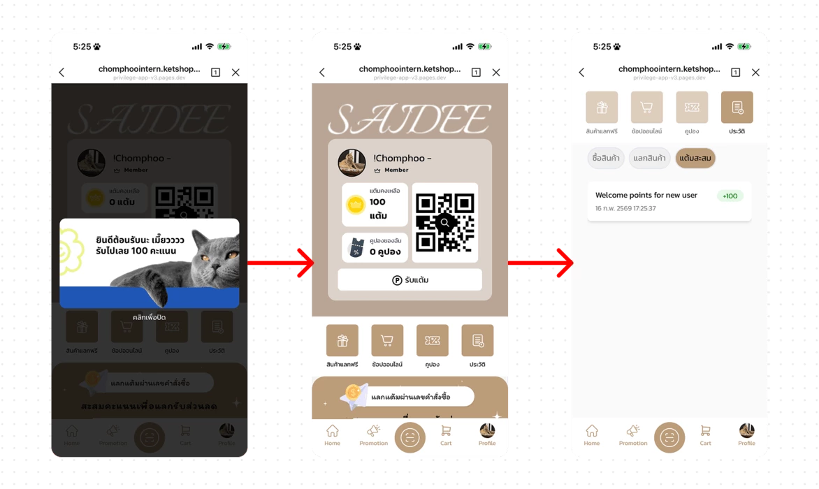 แต้มที่ได้รับจะถูกบันทึกและแสดงในระบบคะแนนสะสมของสมาชิก