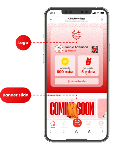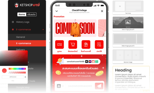 การออกแบบ และการปรับแต่งร้านค้าให้มีสไตล์สอดคล้องกับแบรนด์เป็นสิ่งที่สำคัญมากในการดึงดูดลูกค้า และสร้างประสบการณ์ที่ดีในการช้อปปิ้ง โดยคุณสามารถใส่โลโก้แบรนด์ ปรับแต่งธีม เลือกสีต่าง ๆ ที่เข้ากับแบรนด์ เพื่อเสริมสร้างภาพลักษณ์ของแบรนด์ ช่วยให้หน้า Privilege ของคุณสะท้อนถึงตัวตนของแบรนด์ได้อย่างชัดเจน โดยไม่ต้องกังวลว่าการใช้ Priviledge (CRM) กับ Ketshopweb จะมีรูปแบบที่ Fixed Pattern จนไปกระทบภาพลักษณ์ของแบรนด์ร้านค้า