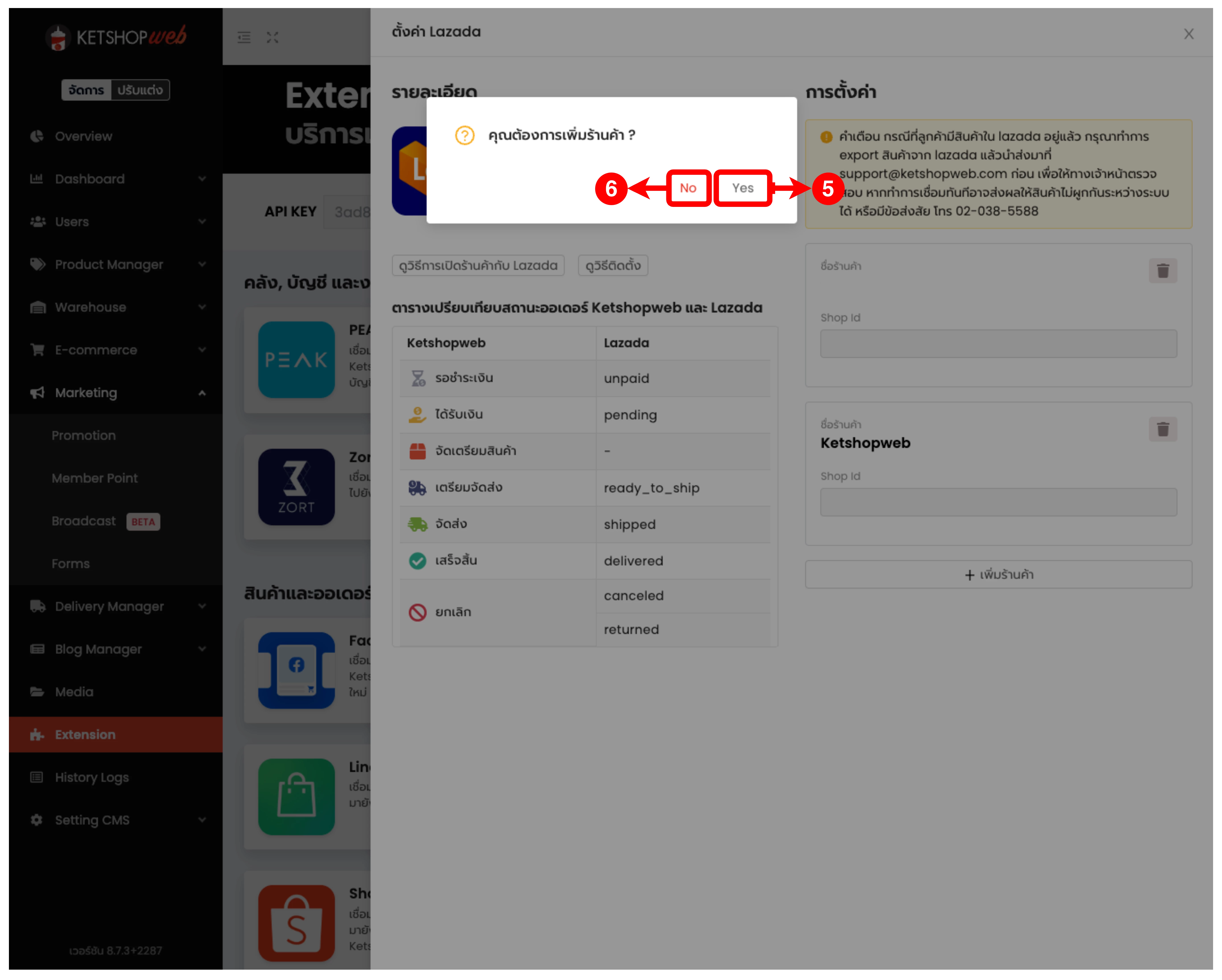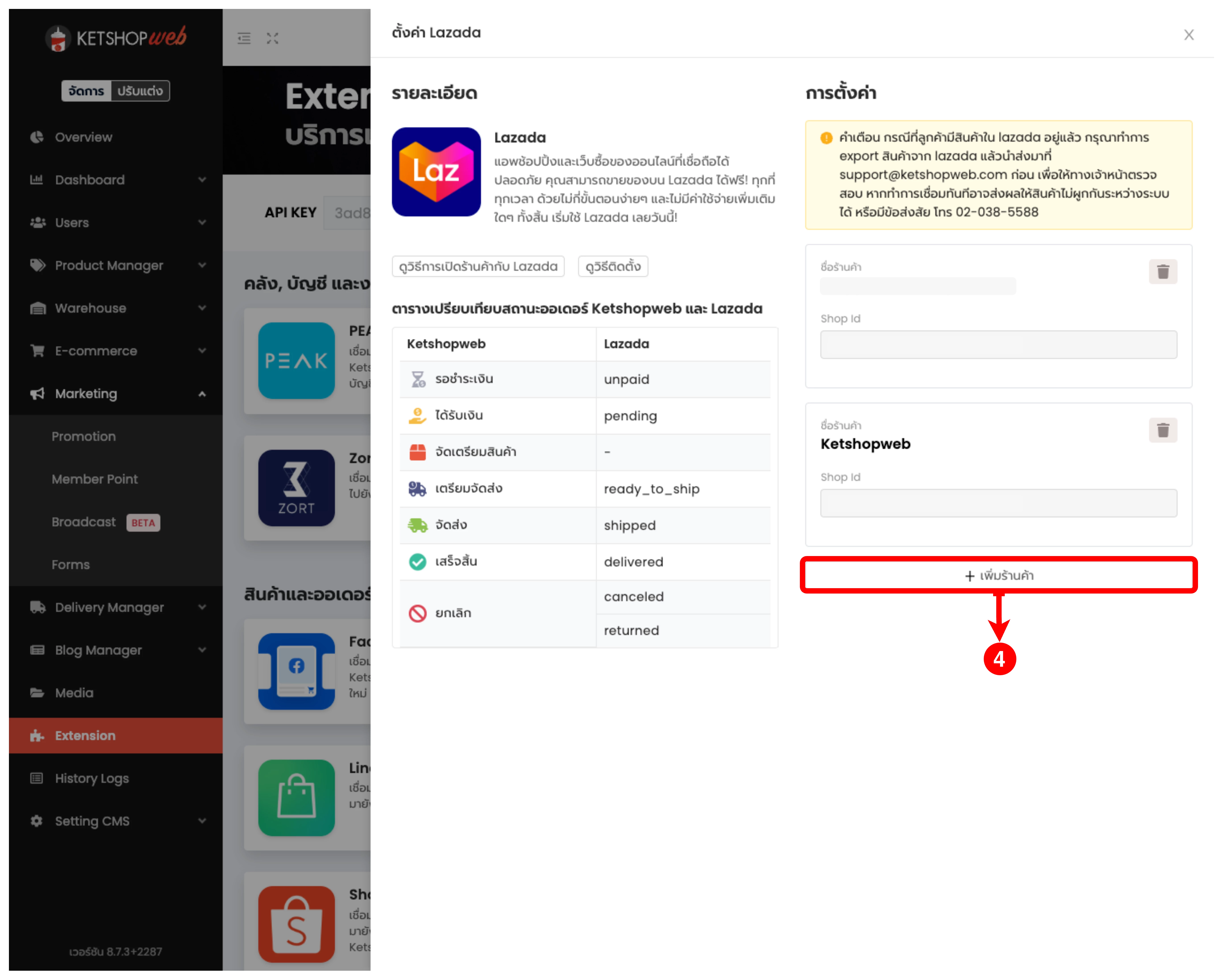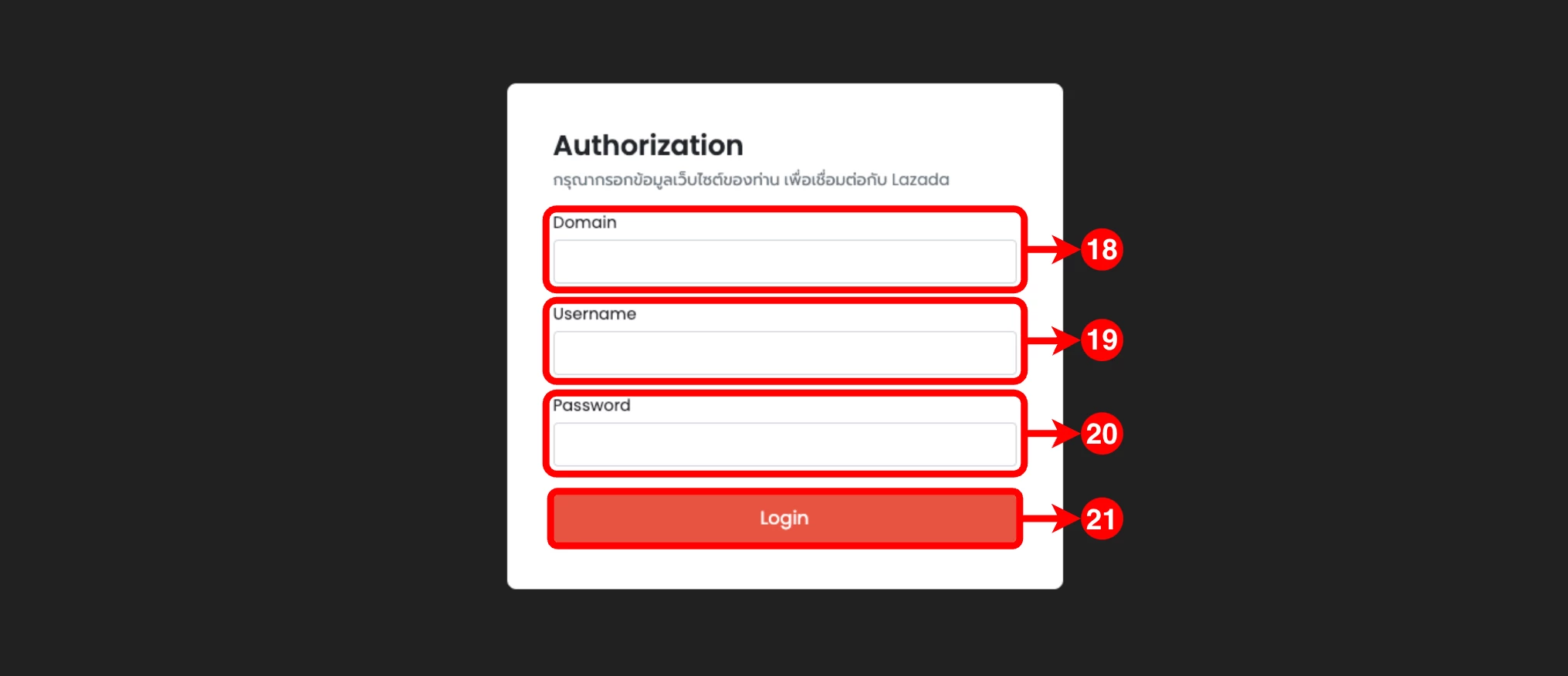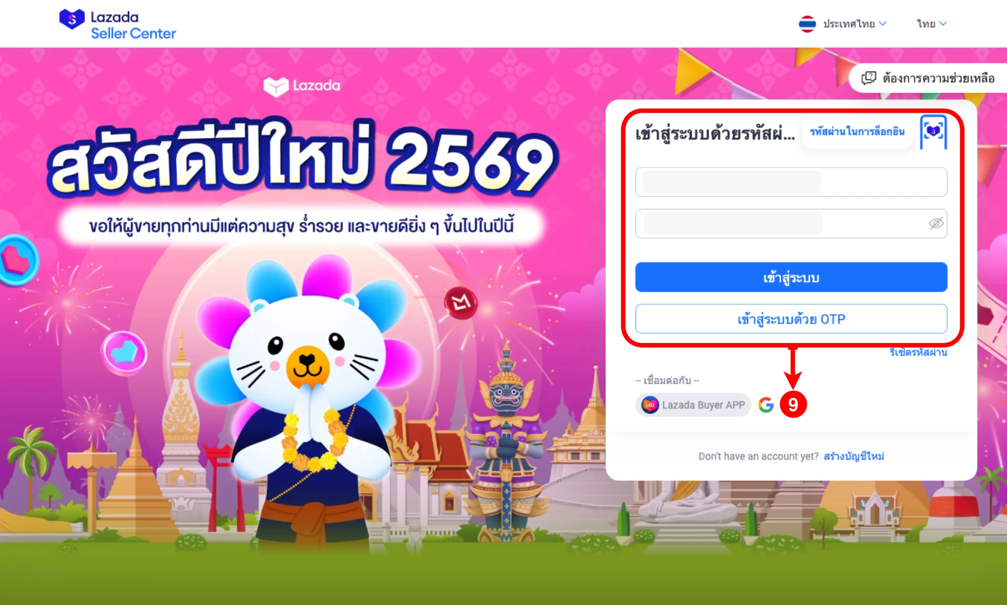 (ตำแหน่งที่ 9) ทำการ Login เข้าสู่ร้านค้า Lazada ที่ต้องการเชื่อมต่อกับ Ketshopweb
