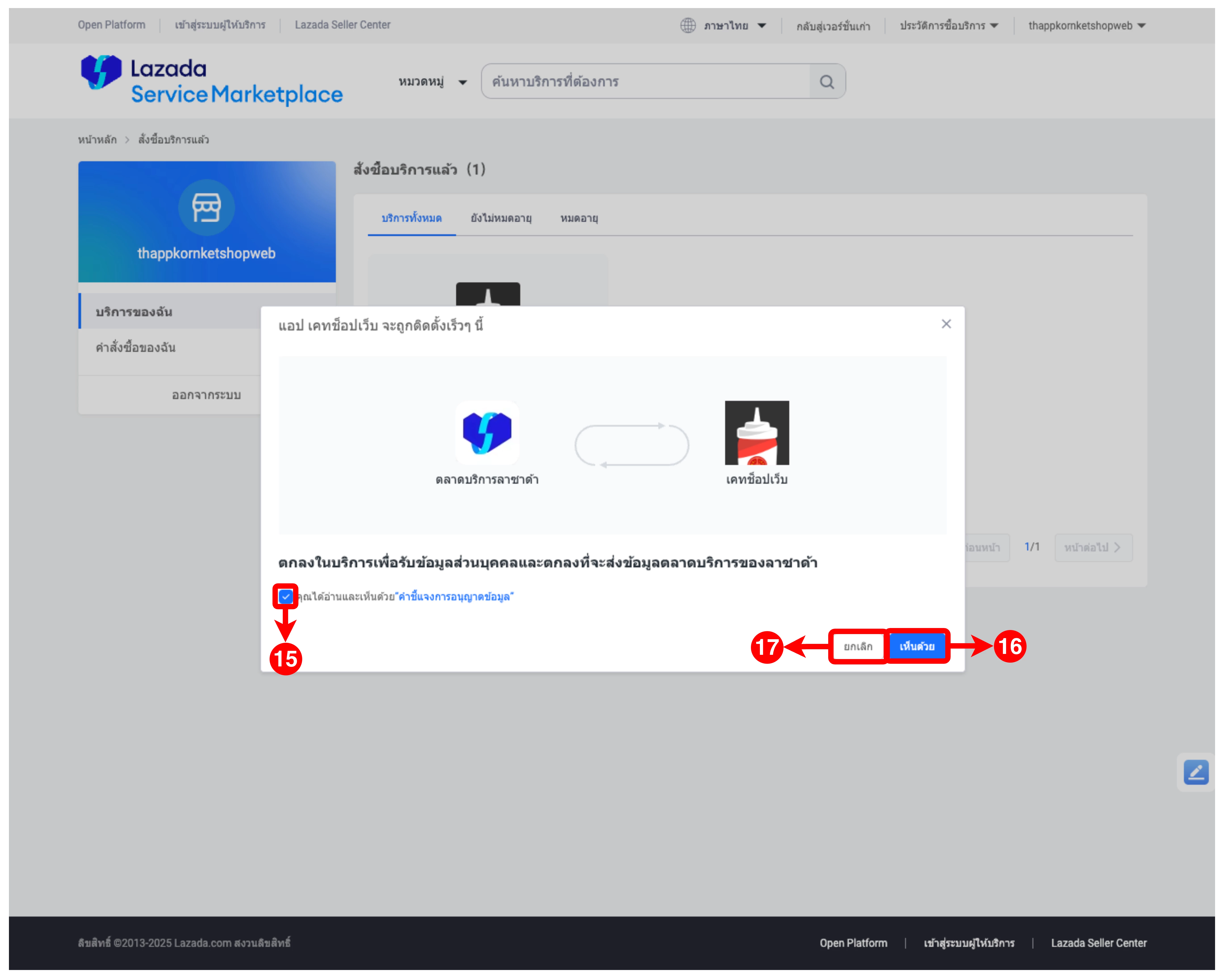 ขั้นตอนการต่ออายุการเชื่อมต่อ Lazada