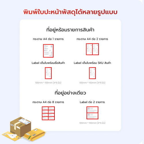 รองรับการพิมพ์ใบปะหน้าพัสดุทั้งขนาด A4 และ Label หลากหลายรูปแบบ