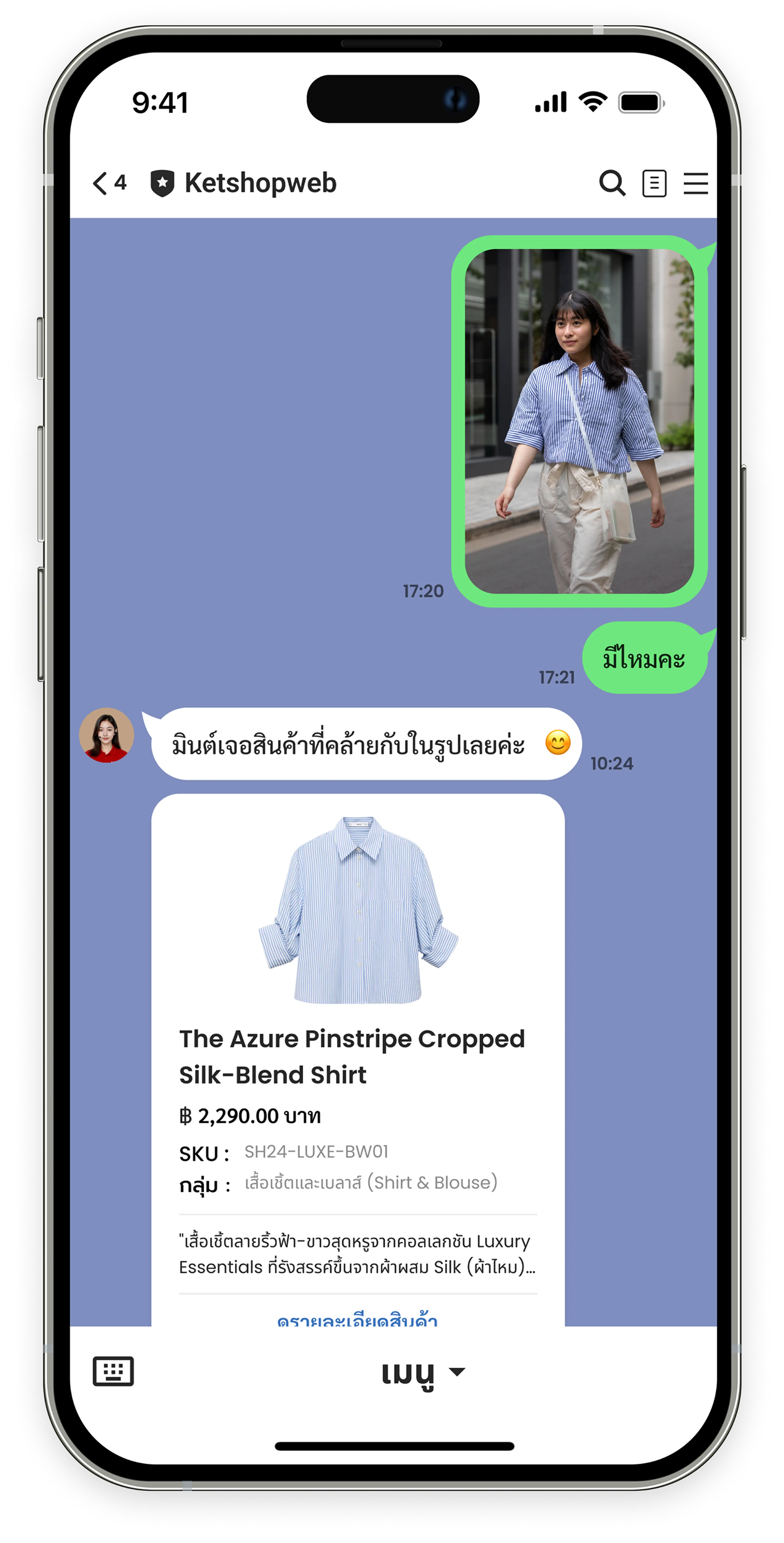 ลูกค้าส่งรูป, URL หรือชื่อสินค้า เพื่อให้ AI ค้นหาสินค้าที่ต้องการ