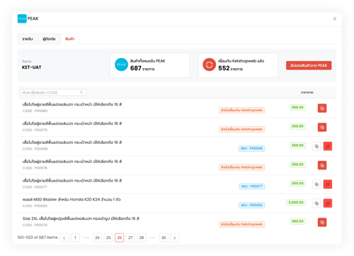 การเชื่อมต่อสินค้าเพื่อให้การซิงค์ SKU ระหว่าง PeakAccount และ Ketshopweb เป็นไปอย่างแม่นยำ ทำได้ง่ายและไม่เกิดปัญหาใด ๆ