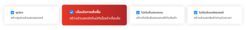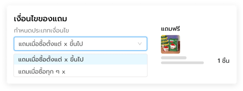 เมื่อการสั่งซื้อเข้าเงื่อนไข ระบบจะทำการเพิ่มของแถมให้เองโดยอัตโนมัติ โดยสามารถกำหนดประเภทเงื่อนไขเพิ่มเติมได้