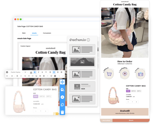 หน้า Sale Page ที่สวยงาม ย่อมดึงดูดให้คนเข้ามาดู เราจึงมีเครื่องมือที่ช่วยให้คุณปรับแต่งหน้าตาของ Sale Page เพื่อสร้าง Brand และอธิบายสินค้าได้อย่างอิสระ