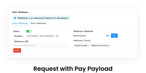 เป็นฟีเจอร์ที่ช่วยให้ร้านค้าออนไลน์ที่ใช้แพลตฟอร์ม สามารถเชื่อมต่อและทำงานร่วมกับระบบอื่น ๆ ได้อย่างมีประสิทธิภาพ โดยการส่งข้อมูลไปยัง URL