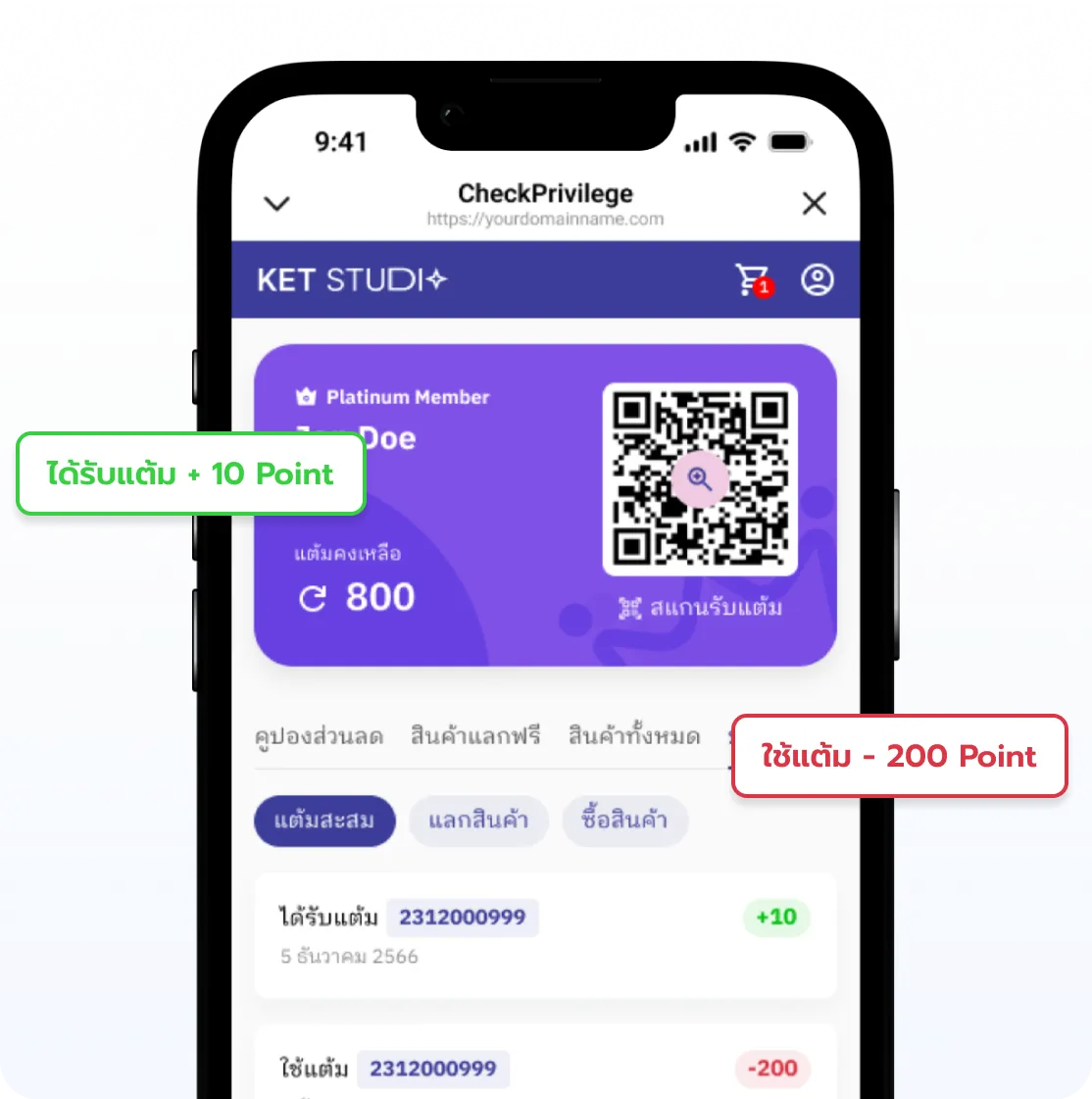 ระบบแต้มสะสมพร้อมให้บริการเพื่อดึงดูดลูกค้าให้เป็นลูกค้าประจำ สามารถดูแต้มสะสมของลูกค้า และเช็คประวัติการสะสมแต้ม การใช้งานแต้มของลูกค้าได้