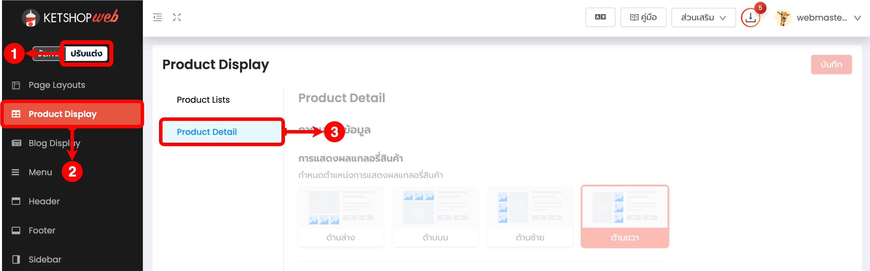 (ตำแหน่งที่ 3) เลือกเมนูย่อย 'Product Detail'