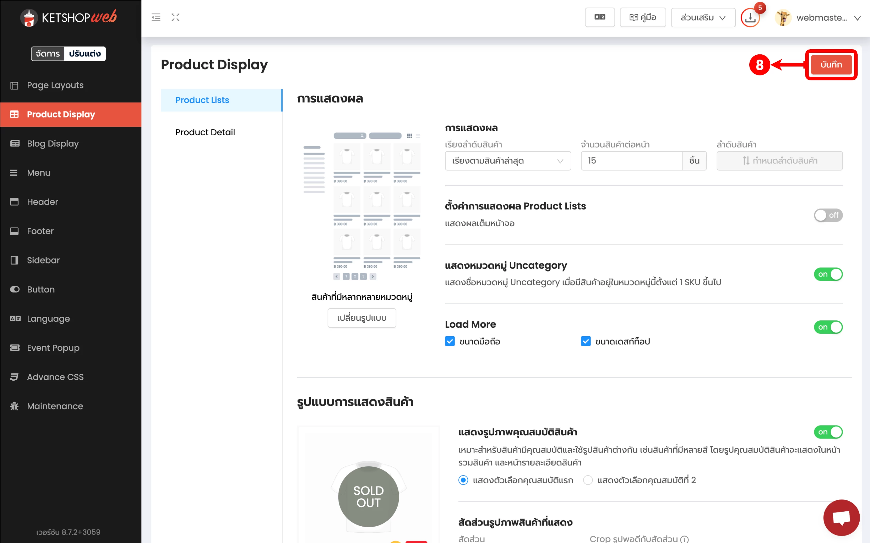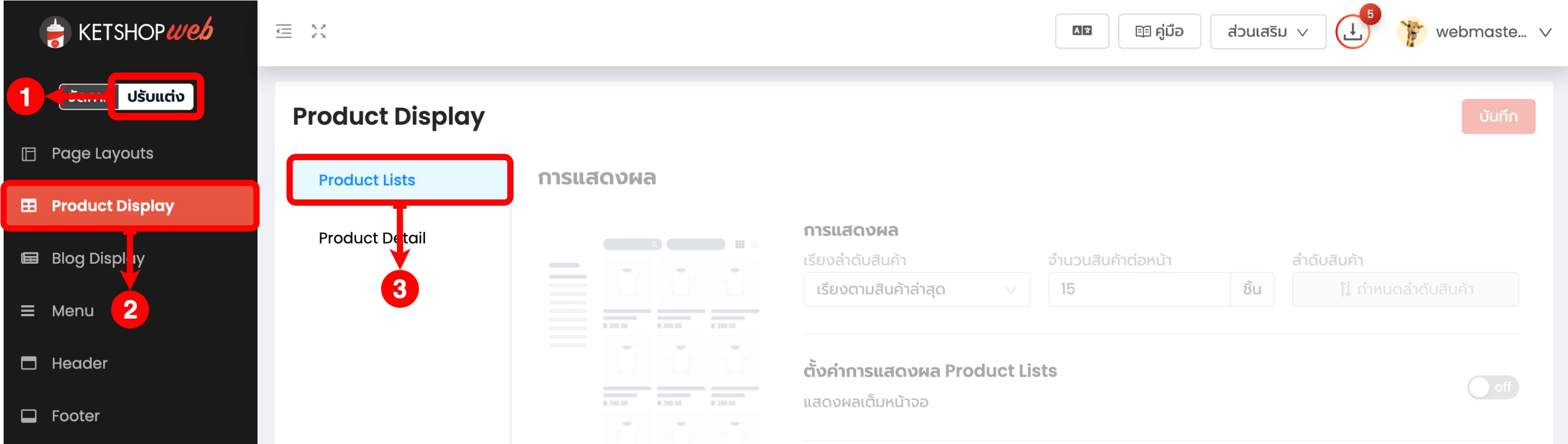 (ตำแหน่งที่ 2) เลือกเมนู 'Product Display'