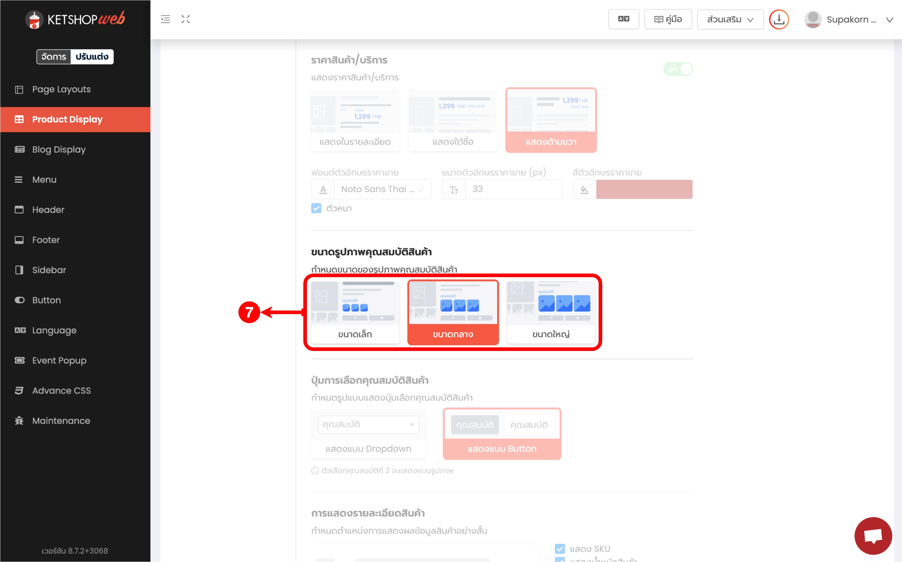(ตำแหน่งที่ 7) เลือกขนาดของรูปภาพคุณสมบัติสินค้าที่ต้องการ