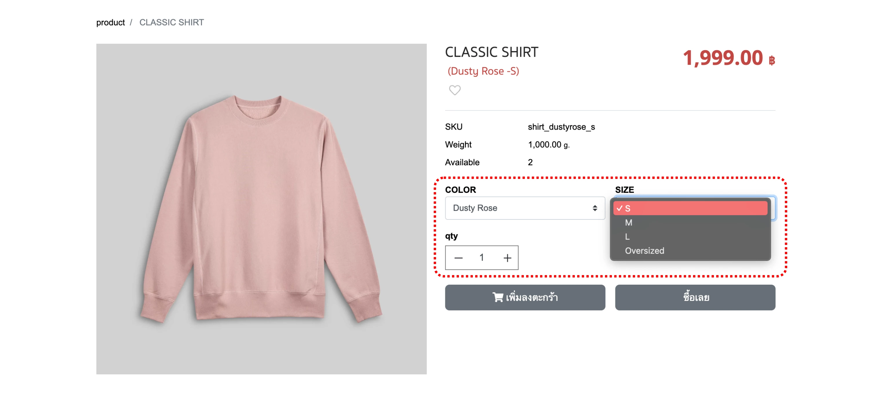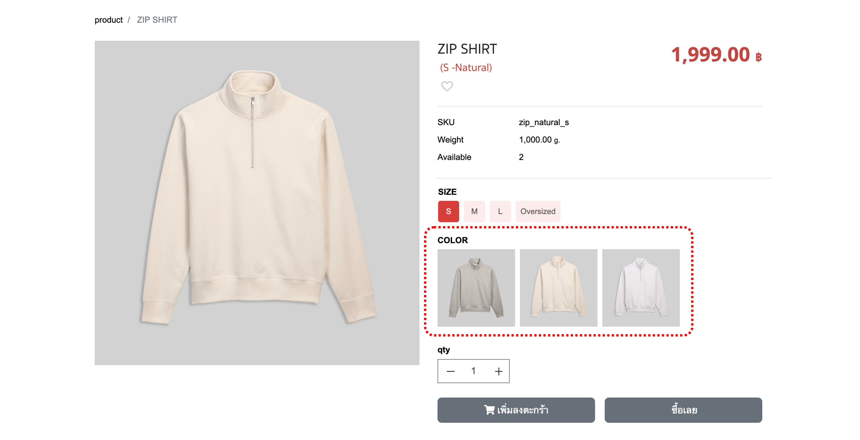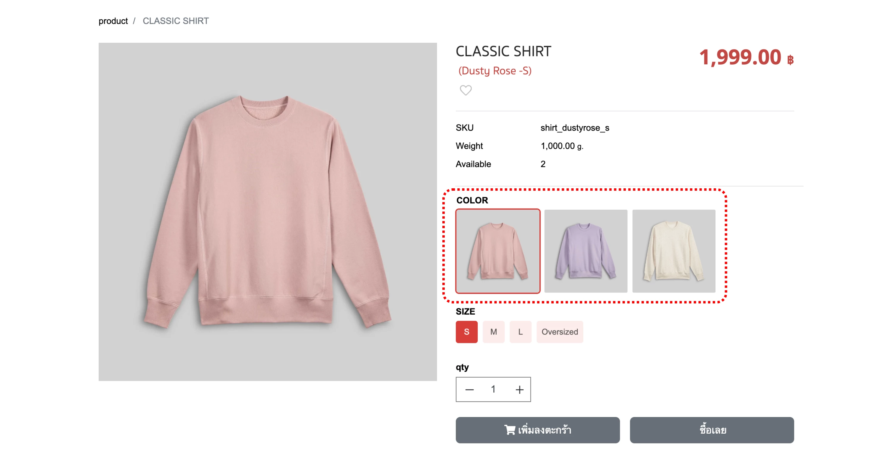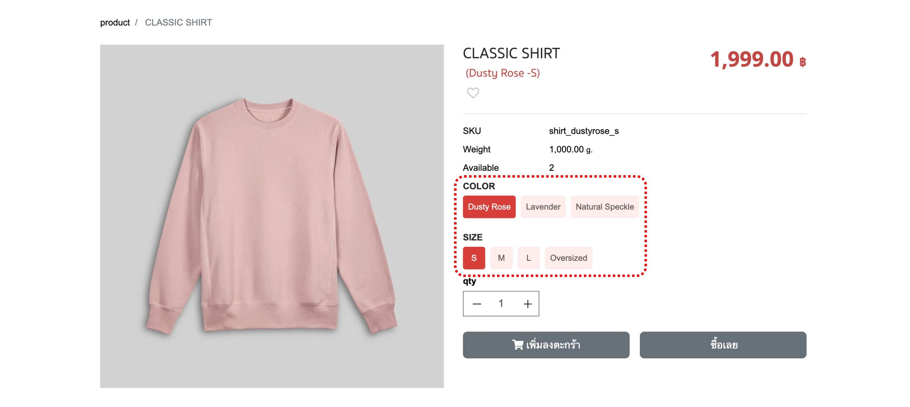 การตั้งค่ารูปแบบการแสดงผลปุ่มเลือกคุณสมบัติสินค้า